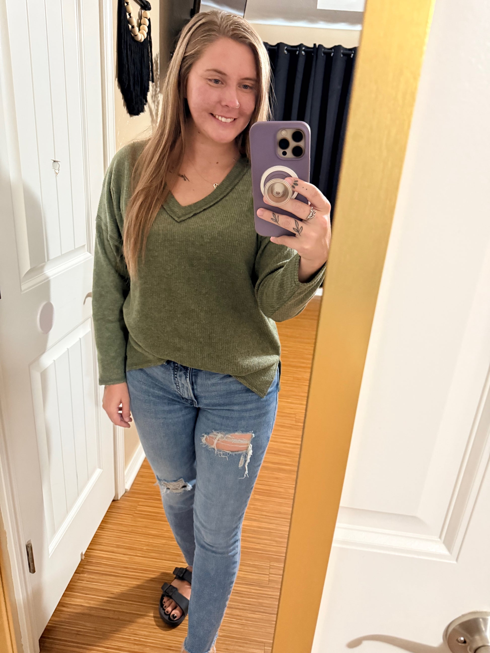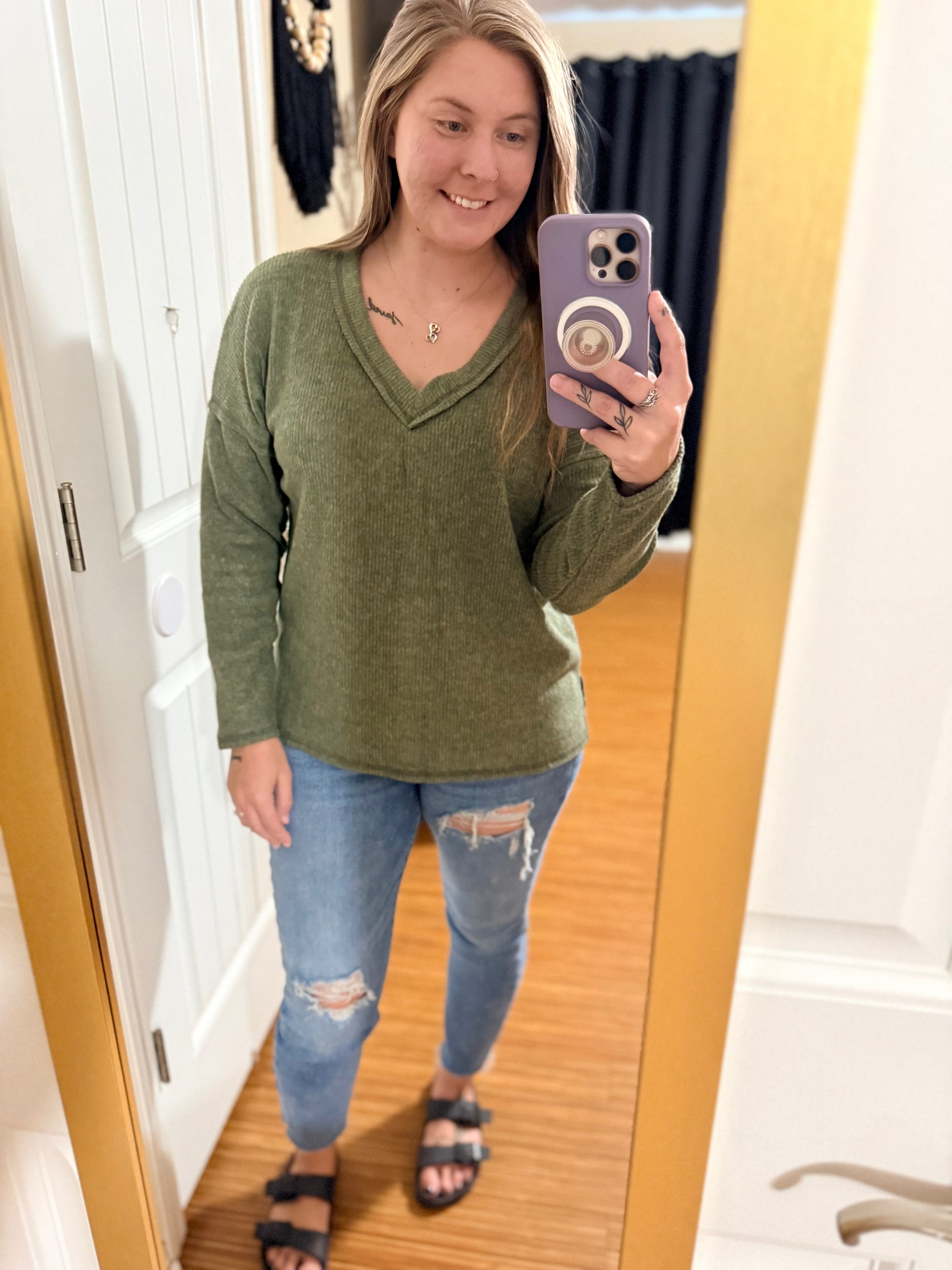 It fits a little oversized, super soft, and it's perfect for layering! I am wearing a medium & my beautiful niece is wearing a 2X in the pictures.